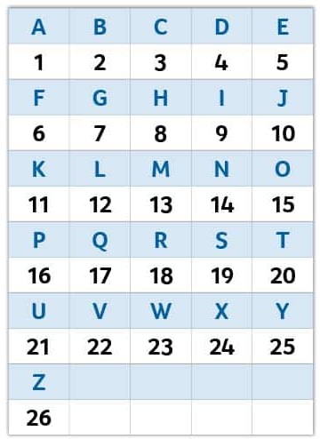 Use this alphabet grid and the questions below it to find your 5-letter word: